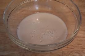 В большую миску выливаем чистую теплую воду, высыпаем сахар и крошим чистыми руками свежие дрожжи. Воспользовавшись столовой ложкой или ручным венчиком, все тщательно перемешиваем до тех пор, пока у нас не получится однородная жидкость.