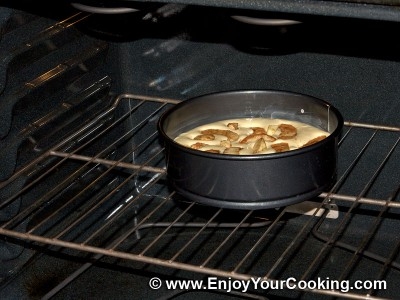 - Нагреваем духовку до температуры 180°С и ставим форму с блюдом в духовой шкаф. Выпекается пирог 35 — 40 минут.