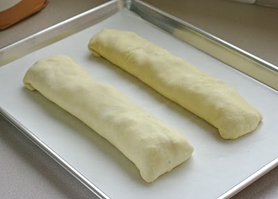 - И так несколько раз, пока у нас не получится рулет. Края штруделя придавливаем пальцами, чтобы начинка в процессе запекания не вытекла наружу.