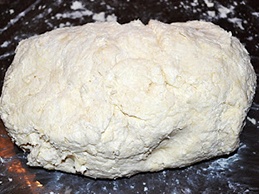 - Чистыми руками замешиваем плотное тесто, в конце формируя из него шар. Обматываем его в пищевую пленку и кладем в холодильник настаиваться в течение 30 минут.