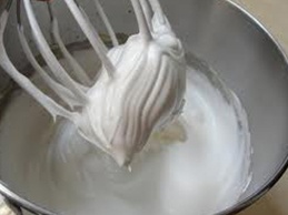 В маленькую миску выливаем яичные белки и высыпаем щепотку соли. С помощью миксера взбиваем ингредиенты до образования плотной массы с пиками. Внимание: для того чтобы ускорить этот процесс, необходимо белки заранее поставить в холодильник.
