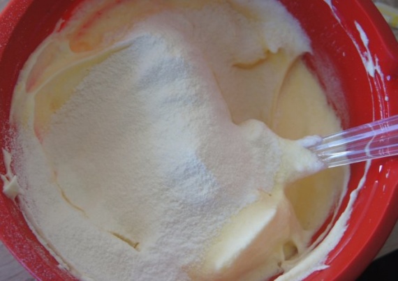 - Когда белковая масса станет настолько густой, что при наклоне не будет течь, переходите к следующему этапу готовки теста.