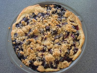 - Как только у нас получилась тестовая основа, выкладываем нашу ягодную начинку, при этом борта из теста должны быть выше черничных ягод. Оставшееся тесто, разминаем в крошку и посыпаем сверху нашу выпечку.