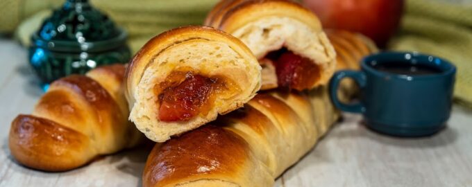 Как приготовить рецепт Сдобные рулеты с абрикосовым джемом и клубникой