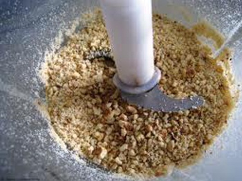 - Затем выкладываем фундук в чашу блендера и на низкой скорости измельчаем до состояния мелкой крошки. Внимание: если вы хотите, чтобы в пироге попадались кусочки фундука, тогда можно уменьшить количество импульсов на электроприборе и обязательно необходимо следить за самим процессом измельчения ореха.