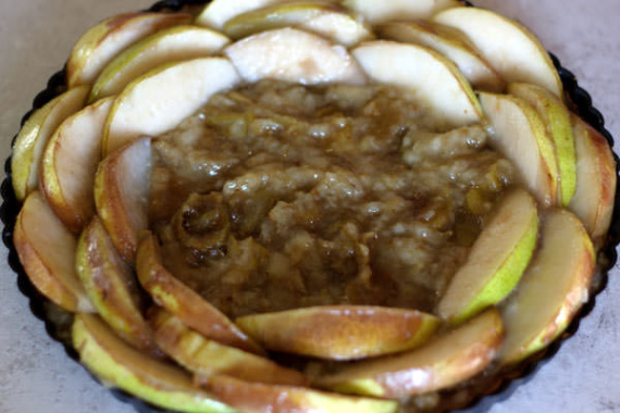 Запекайте тарт с грушами при 170 градусах в течение 30 минут. Разогрейте в микроволновке (20 секунд) жидкую часть фигового варенья и покройте им готовый тарт сверху. Верните в духовку и продолжайте запекать, пока кусочки фруктов не получат приятный румяный цвет. Следите, чтобы ничего не сгорело!