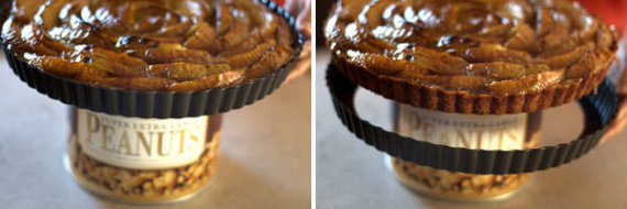 - Тарт должен перед подачей остывать около 1-1,5 часов. Аккуратно снимите края формы, поставив тарт на широкую банку, чтобы было удобно.