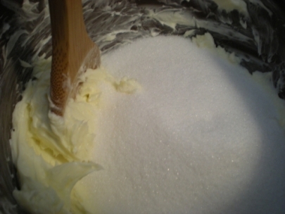 - Далее в слегка подтаявшее масло добавляем сахар и с помощью миксера взбиваем массу до равномерной консистенции.