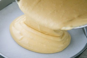 Спустя половину суток можно приступать к приготовлению, но для начала при помощи кухонных ножниц вырезаем из пекарской бумаги два круга диаметром под круглые противопригарные либо жаростойкие формы для выпечки и выкладываем их по одному на дно каждой посуды. Затем включаем духовку на 180 градусов Цельсия и идем дальше.