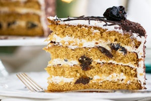 - Сметанный торт с черносливом после приготовления настаивают в холодильнике 6–7, а лучше 12–17 часов. После этого его сервируют на большом плоском блюде или порциями на тарелках в качестве шикарного праздничного десерта.
