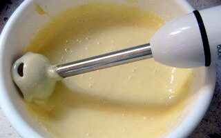 - Помешаем в миску сахар, творог и яичные желтки. Творог должен быть по возможности рассыпчатым и без комков. С помощью блендера взбиваем массу до однородности (около 1 минуты). Перемещаем массу в кастрюлю и ставим на плиту (средний огонь), добавляем сливочное масло и, помешивая ложкой, нагреваем до появления пузырей. И в таком состоянии варим еще несколько минут, не забывая мешать, до консистенции, напоминающей густоватую манную кашку. После чего, не медля, снимаем кастрюлю с плиты.