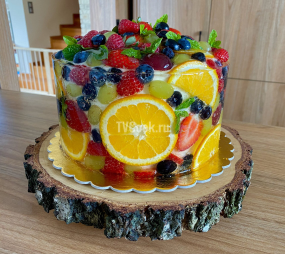 - Вот такой красивый торт с желе и фруктами получается! Приятного аппетита!