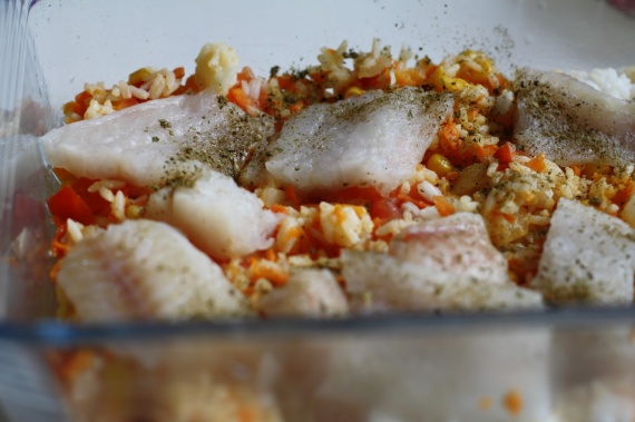 – Порядок слоев в запеканке может быть и несколько другим, например вы можете положить рис как снизу, так и сверху на рыбу.