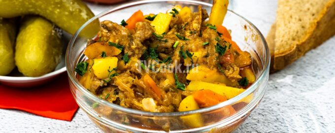 Как приготовить рецепт Азу по татарски с солеными огурцами из говядины
