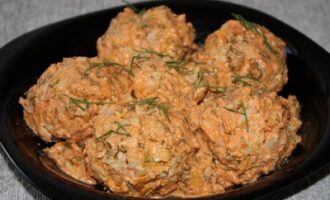 - Из приготовленной массы сформируйте шарики размером с крупное куриное яйцо. Выложите их в глубокую сковороду или сотейник.