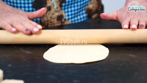 Поочередно раскатываем каждый кусочек теста скалкой до лепешек 2 мм. толщиной.