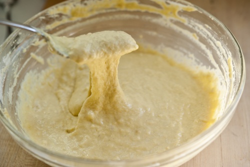 - Перемешиваем массу до образования однородного, липкого теста без комочков.