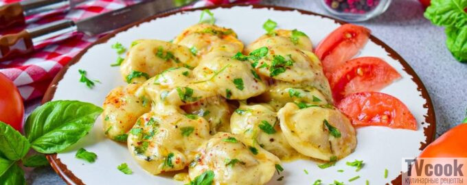 Обжаривайте пельмени в течение 8–10 минут, время от времени аккуратно переворачивая их, чтобы добиться равномерного золотистого цвета со всех сторон. - Добавление сливок и варка: