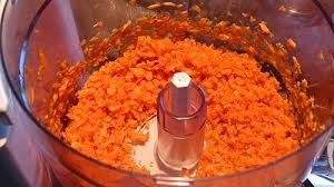 - Затем перемещаем их в чашу электроприбора и измельчаем на средней скорости так же, как и кабачок. Внимание: емкость можно не мыть после обработки каждого из овощей. Морковную стружку пересыпаем в чистую глубокую тарелку.