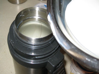 - Получившуюся смесь перелейте в термос с молоком, закройте его плотной крышкой, пару раз встряхните для того чтобы жидкости смешались, укутайте термос в кухонное полотенце и поставьте в теплое место на 12 часов.