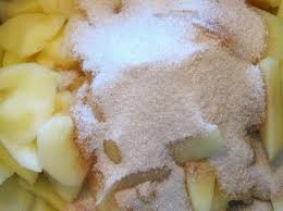 - Готовить повидло из яблок мы будем в несколько подходов. Самый важный – сделать так, чтобы яблоки дали сок. Для этого полностью засыпаем фруктовые кусочки сахаром и, не перемешивая, оставляем на всю ночь. Внимание: чтобы в емкость не попала мошкара и какая-либо еда, закрываем поверхность таза тканевым полотенцем или длинной широкой кухонной бумагой. А чтобы она не соприкасалась с содержимым миски, обязательно закрепляем ее по кайме прищепками.