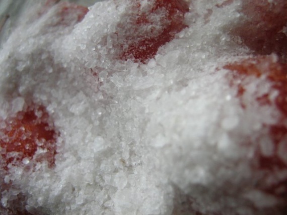 - А пока вода закипает во второй раз, засыпьте в воду сахарный песок, соль и лимонную кислоту. Доводим маринад до кипения, тут же разливаем его по банкам.