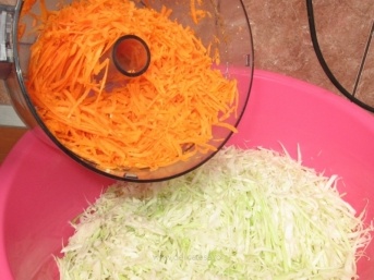 - Капусту очистите от верхних пожухлых листьев, удалите горькую кочерыжку. Подготовленную капусту нарежьте очень тонкими полосочками. Если у вас кухонный комбайн, то лучше доверьте это ему.