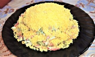Очищаем лук от шелухи и после – хорошо промываем. Измельчаем до маленьких кусочков. Внимание: в данном случае также, как и с сельдью, чем мельче мы порубим лук, тем вкуснее будет блюдо. Измельченный ингредиент перекладываем в емкость с другими компонентами.