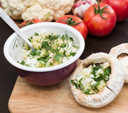 Шампиньоны, фаршированные овощами — простое сезонное блюдо. Готовьте его из овощей, которые вы вырастили на своем