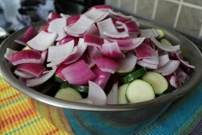 - С цуккини поступаем так же, но шкурку можно не удалять, она довольно тоненькая.