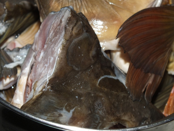 - Рыбьи головы почистите от жабр и глаз. Хорошо промойте. Переложите части карпа в кастрюлю, залейте холодной водой и оставьте на 15 минут.