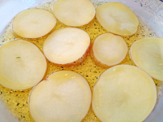 – — Лучше всего картофель нарезать тоненькими ломтиками, но вы можете резать как вам больше нравиться.