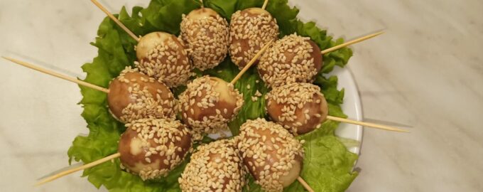 Узнайте, как приготовить закуску ‘Мухоморы’ с начинкой из яиц, лука и майонеза. Превосходно подойдет для праздничного