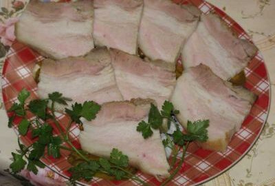 – — Для того, чтобы закуска получилась еще более вкусной, лучше всего при выборе сала отдать преимущество тому, которое будет с прослойкой мяса. Но нужно учитывать, что если сало выбрано именно такое, то время его выпекания увеличивается до 60 минут.