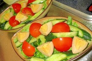 Салат из помидоров и яиц — очень простое и незатейливое блюдо, с готовкой которого справится даже новичок, делающий